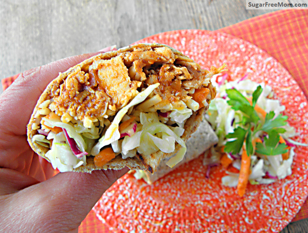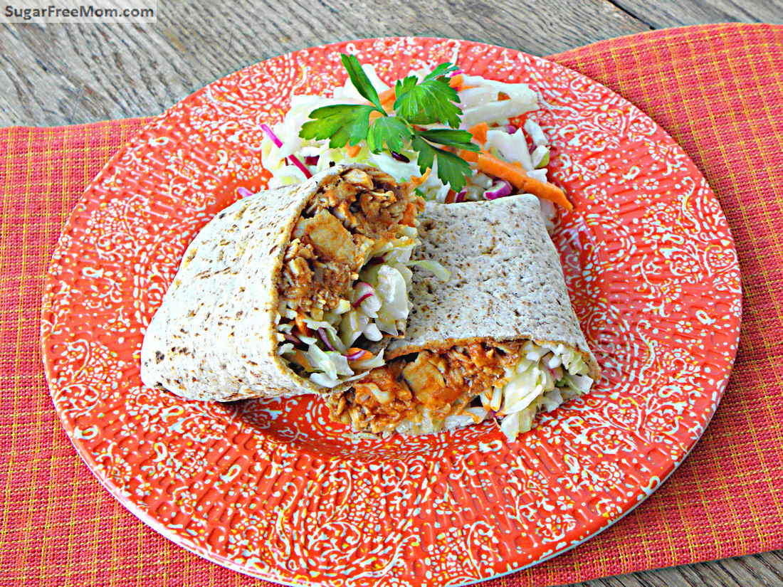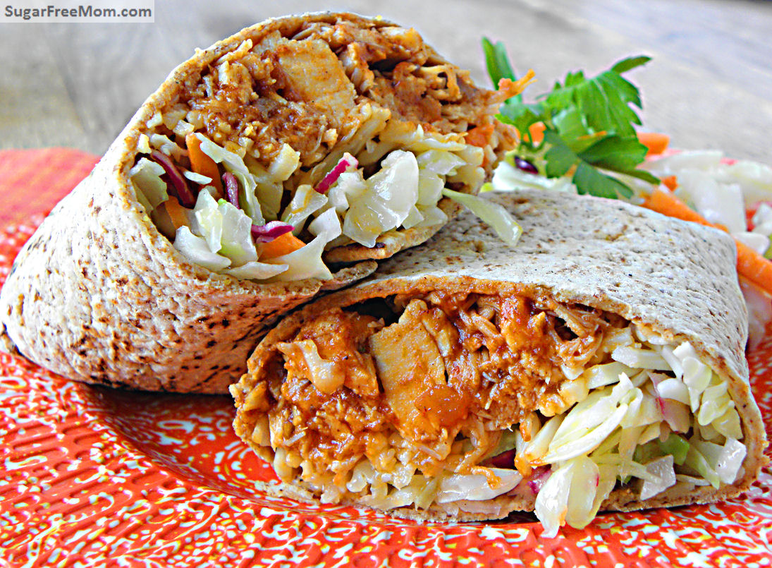 BBQ Chicken Cheddar Burritos with Mayo Free Slaw