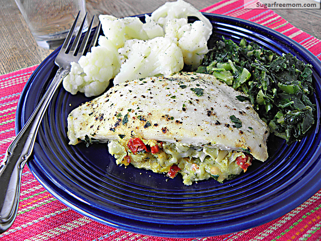 One day for lunch I enjoyed a delicious stuffed chicken breast. It had artichoke hearts in it, peppers and cheese and it was oh so good!