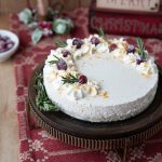 - Place the heavy whipping cream in a stand mixer with the vanilla stevia or sweetener of choice and using the whisk attachment, whip until stiff peaks. Place into a pastry bag with the star tip orย piping toolย and cover the edges of the cheesecake with whipped cream adding cranberries and fresh rosemary twigs around edges.
