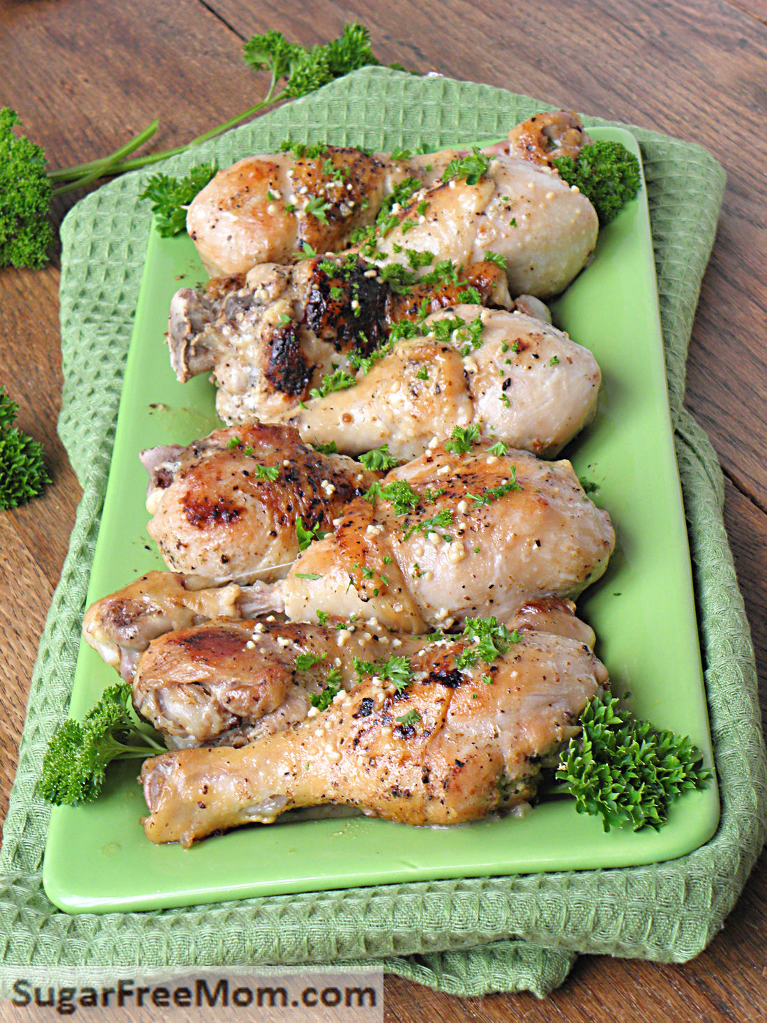 - Pour remaining juice from pan over drumsticks and garnish with fresh parsley.