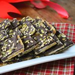If you prefer a nice uniform toffee bark, after it’s hardened simply cut into squares. I will tell you this toffee you see here was cooked over the time limit by accident on my part and was quite a bit harder to cut then you’ll see in the free form toffee bark below. So when I say boil only 3 minutes on the stove, set that timer because otherwise you’ll end up with something you can’t even bite into. I’ve also tried this recipe increasing the brown rice syrup,ย but it resulted in way too much toffee on the crackers so follow the recipe and you’ll be fine. No one wants to waste ingredients right?