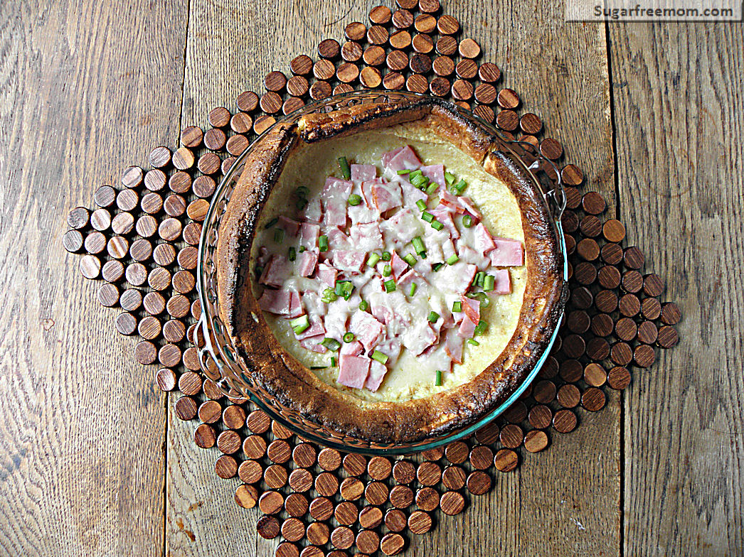 You’ve surely seen my original puff pancake recipe and all the variations of that with fruit, but this one is a bit different. Baked in the oven in 20 minutes then topped with ham and cheese for a few more minutes makes for a perfect weekend breakfast or even weeknight dinner!