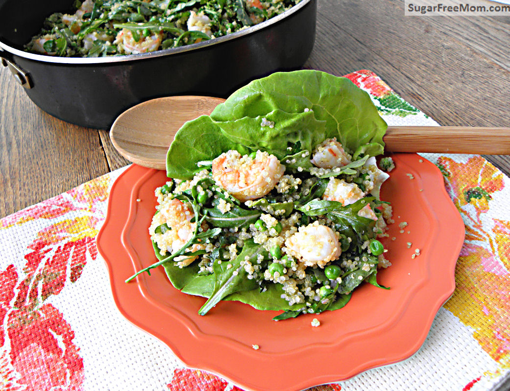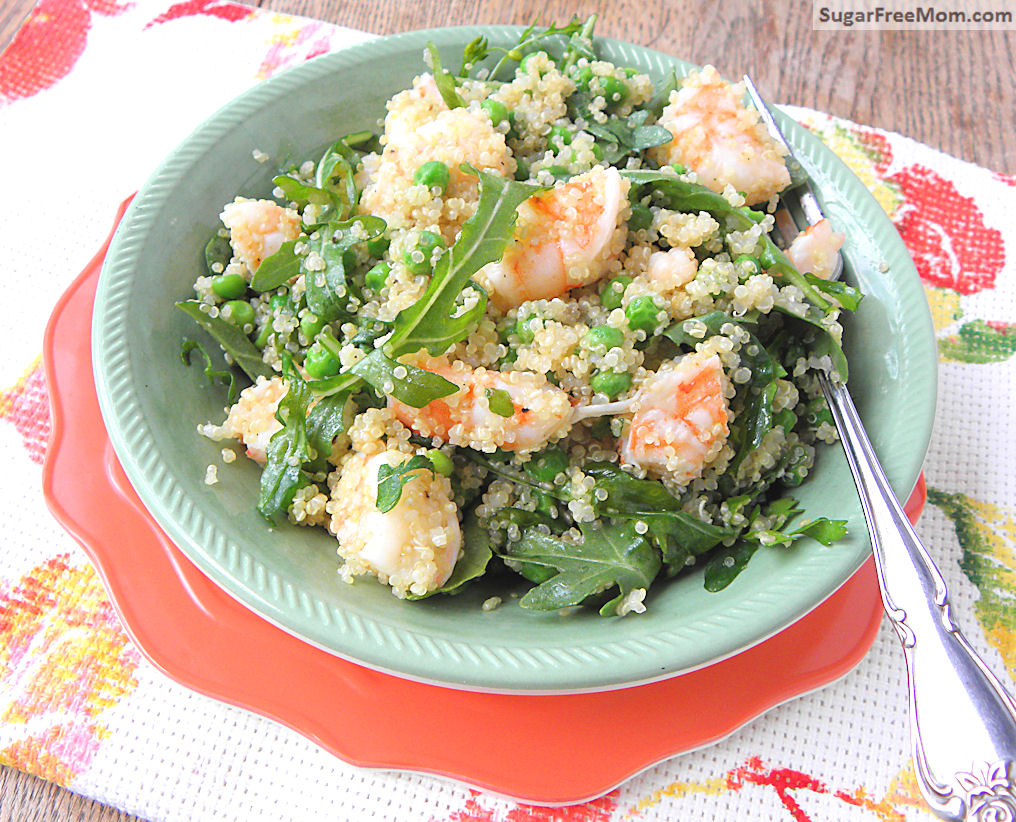 Lemon Garlic Shrimp with Quinoa, Arugula & Peas