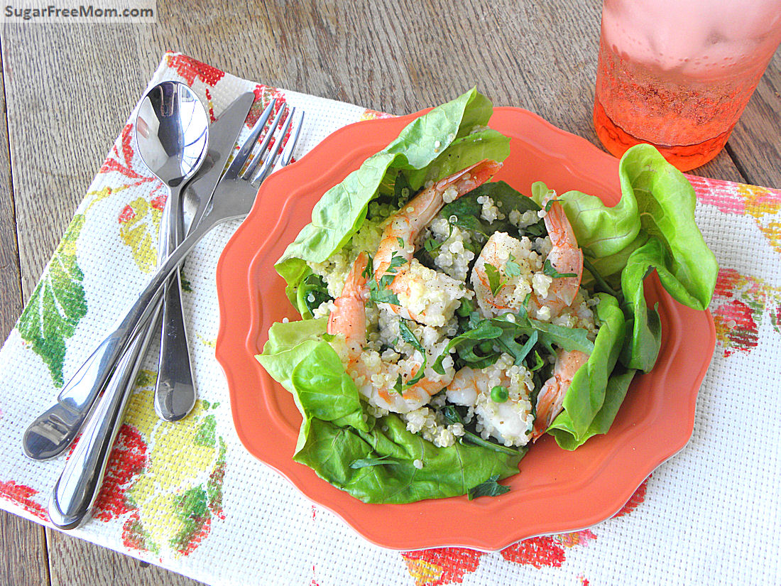 The combination of lemon and garlic bring a fresh burst of flavor in every bite of shrimp. You can remove the tails once they are cooked and chop the shrimp up to make it nice and easy to eat like a taco in a lettuce cup. Or leave as is, however you fancy.