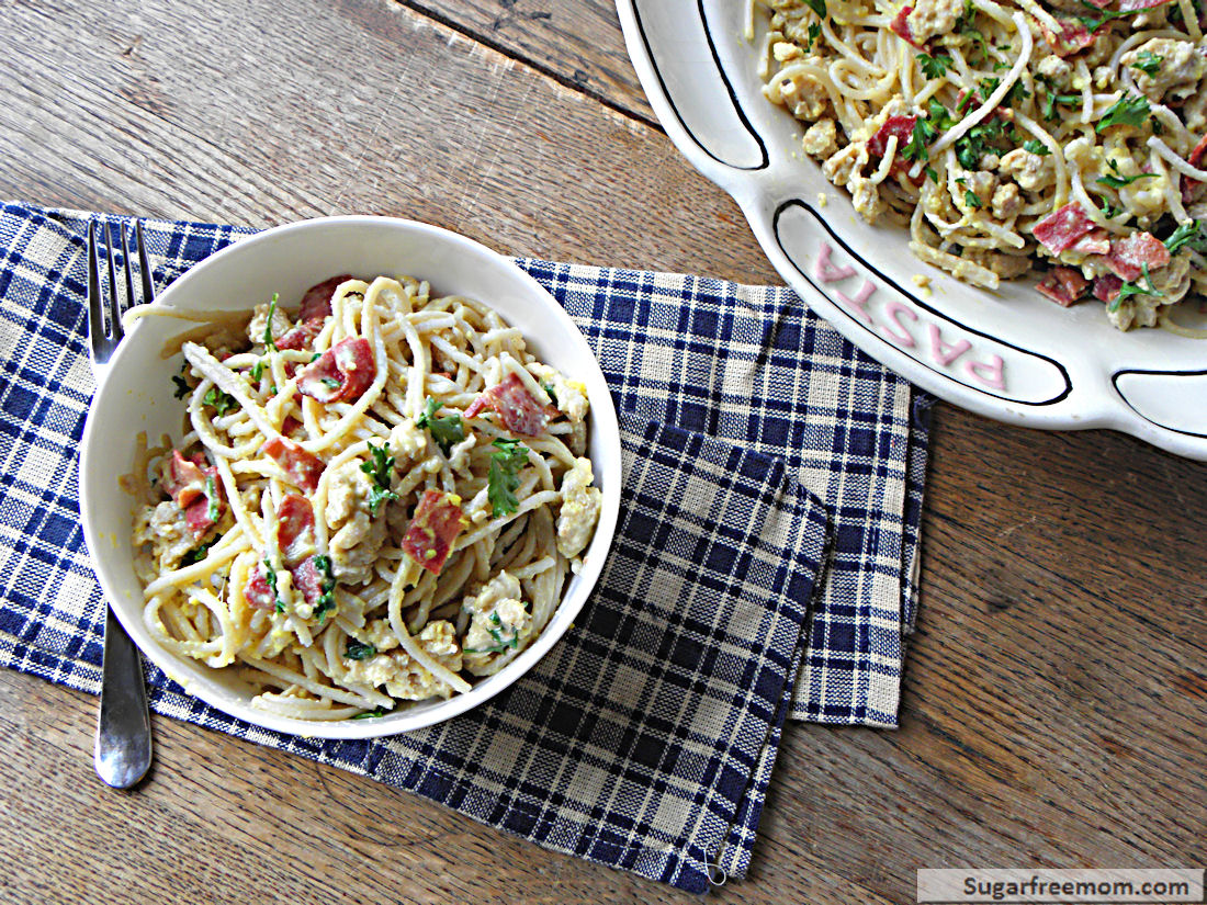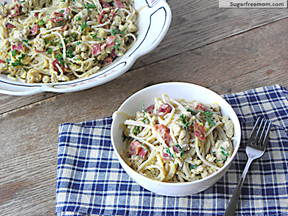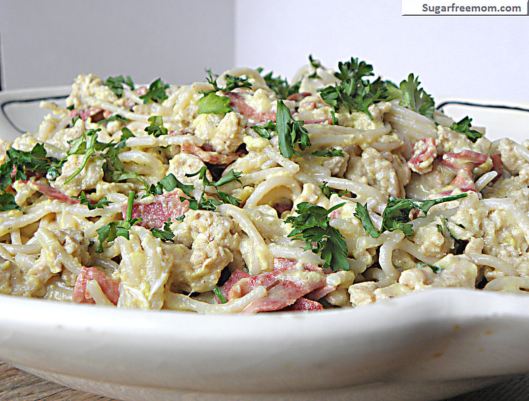 Lightened Up Spaghetti alla Carbonara with Chicken