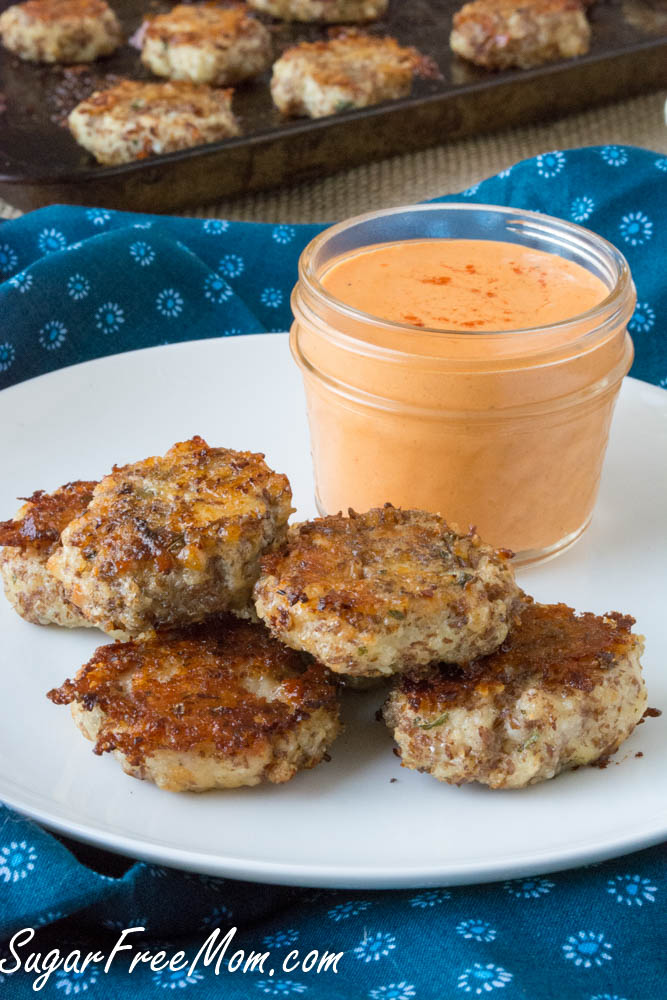 Keto Cheesy Chicken Nuggets with Creamy Roasted Red Pepper Sauce