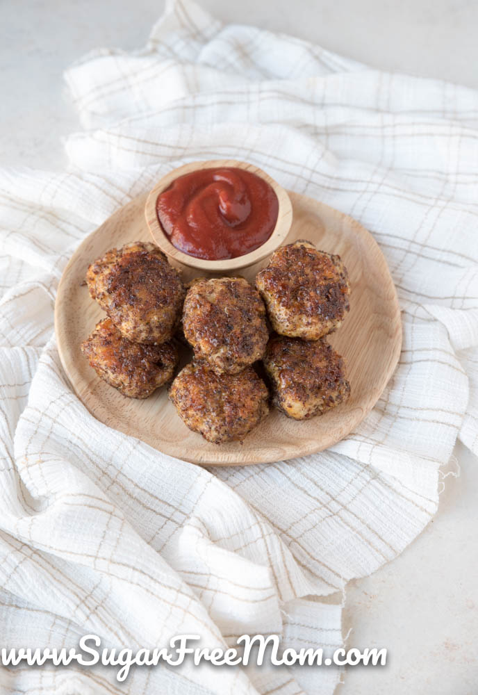 Making a healthier, low carb chicken nugget that will pass the inspection of children is a hard task in and of itself. Using swaps for the traditional flour and/or nut flours that many keto chefs use is also another challenging accommodation to be made. My youngest son has a tree nut and peanut allergy so using almond flour is completely out of the question. This often gets me into a very creative mode when I’m working on a recipe that requires a delicious coating, especially a kid friendly one! Ground flaxseed in combination with grated parmesan and spices and we had magic happen! The kids were impressed and to be honest, so was I! They loved these nuggets!