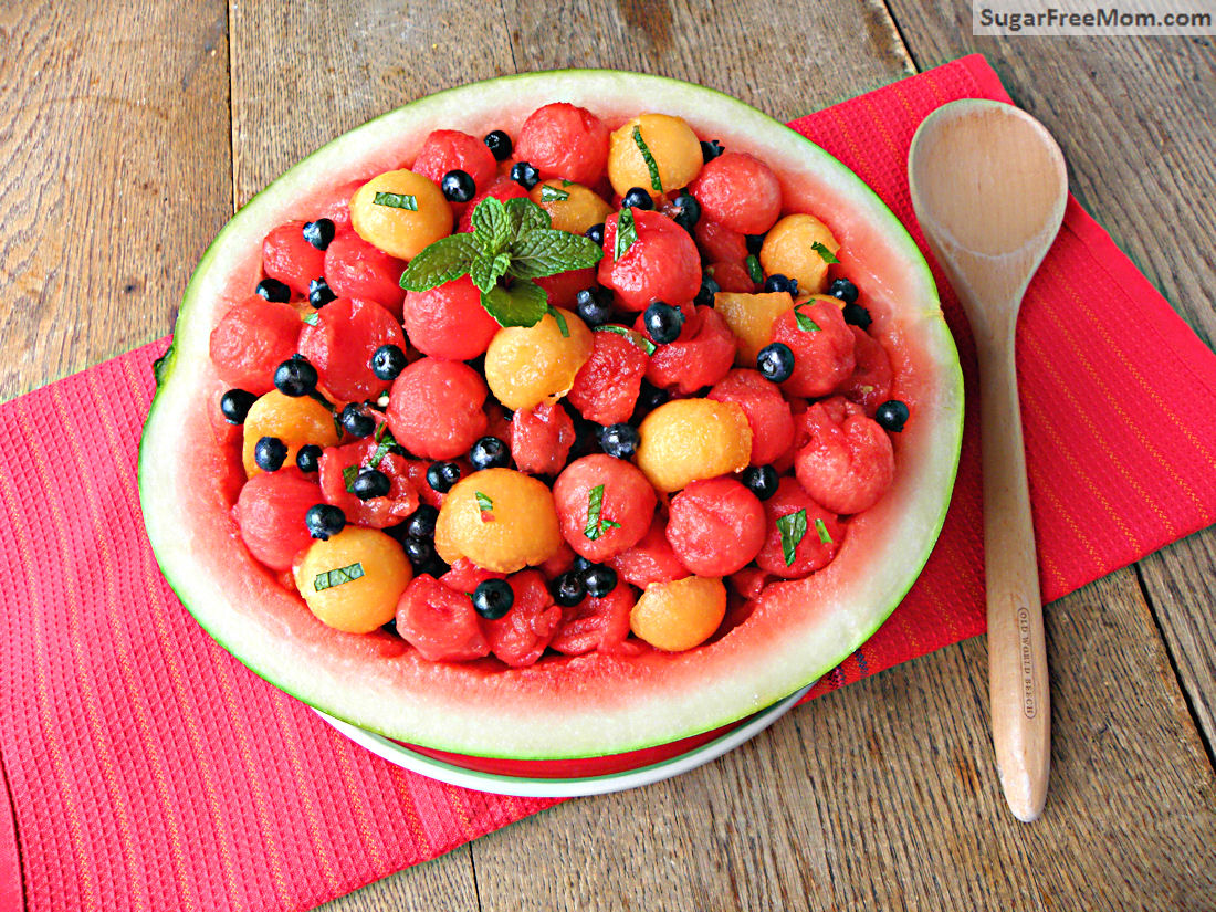 Watermelon Cantaloupe Berry Mint Salad with Honey Vinaigrette