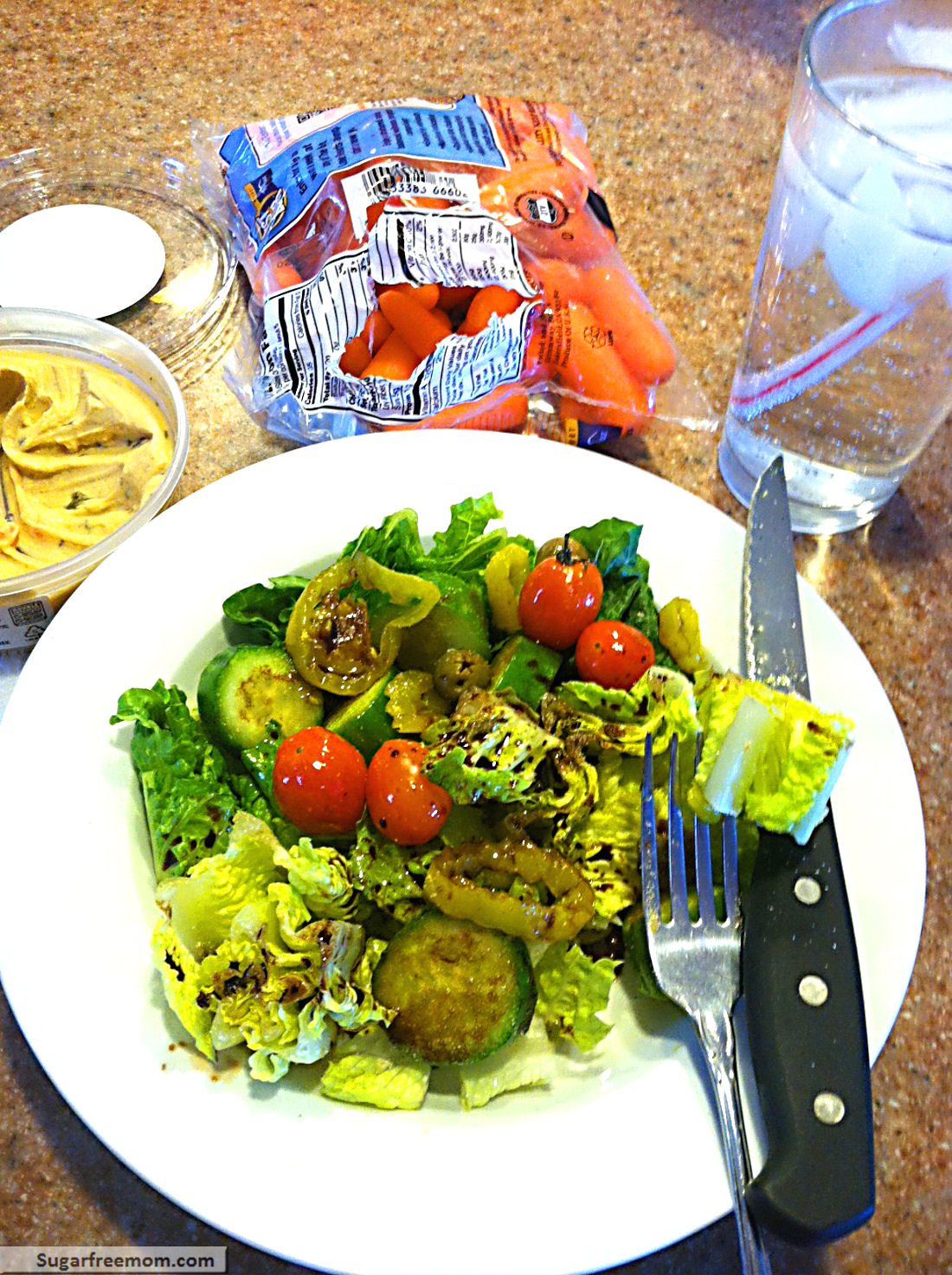 A simple salad with cukes, tomatoes, balsamic, banana peppers and carrots and hummus was lunch. Didn’t feel like any meat so I didn’t have any simple as that. Who says it’s required at every meal? Not me and it was enough.