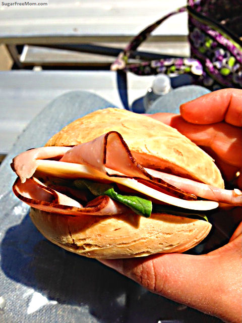 We rushed out of church to get the little man ready for his baseball game at 11:30, worse time ever, but I was able to make a lunch for myself before we left. I knew the concession stand would be open and I was NOT going to succumb to french fries, no sirrrrr-eeee!