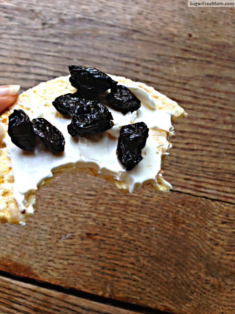 Afternoon snack was a corn thin topped with light cream cheese and apple juice infused dried cherries I found at Whole Foods.