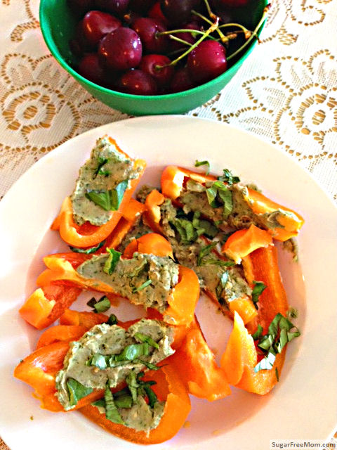 We then had a dance recital for my daughter and after it she went over a friends house and my son was with his auntie so I came home and enjoyed some of my favorite new dip, Avocado Bean Dip on sweet pepper slices!