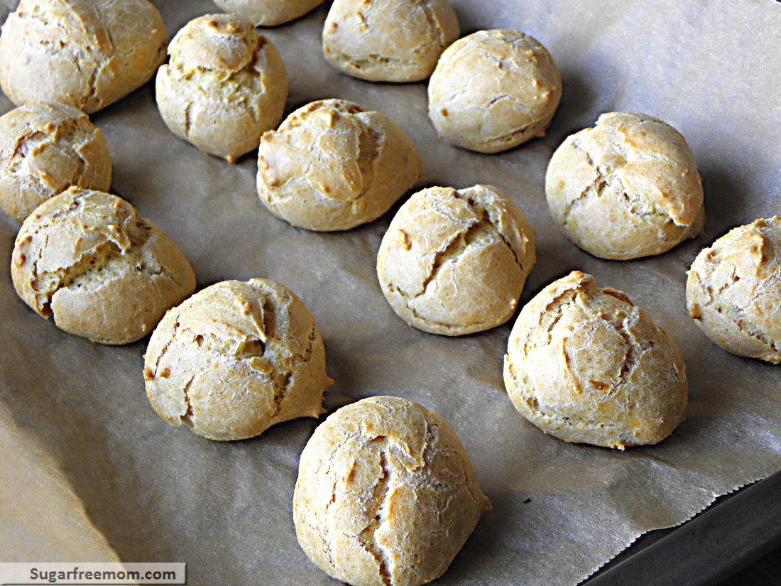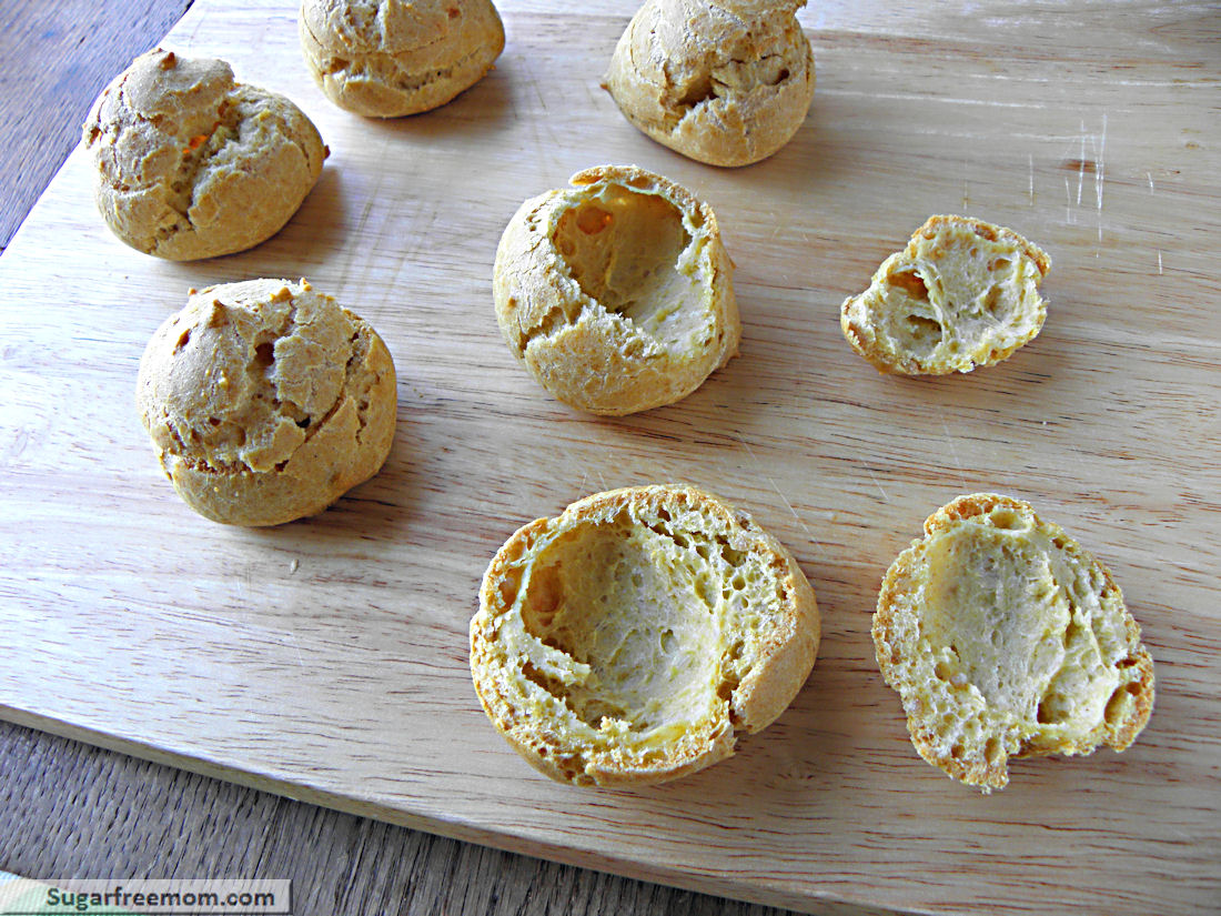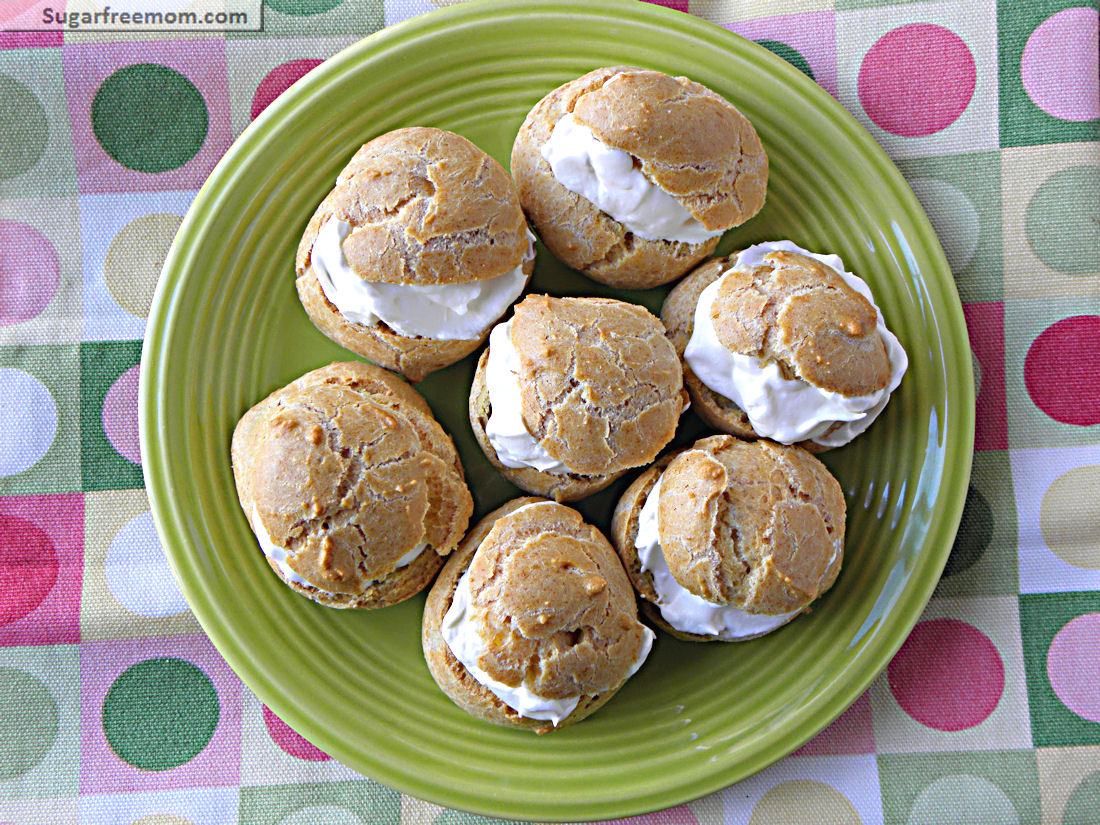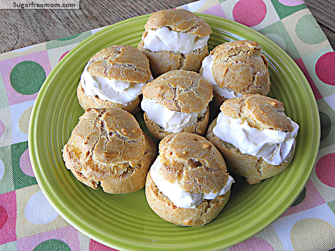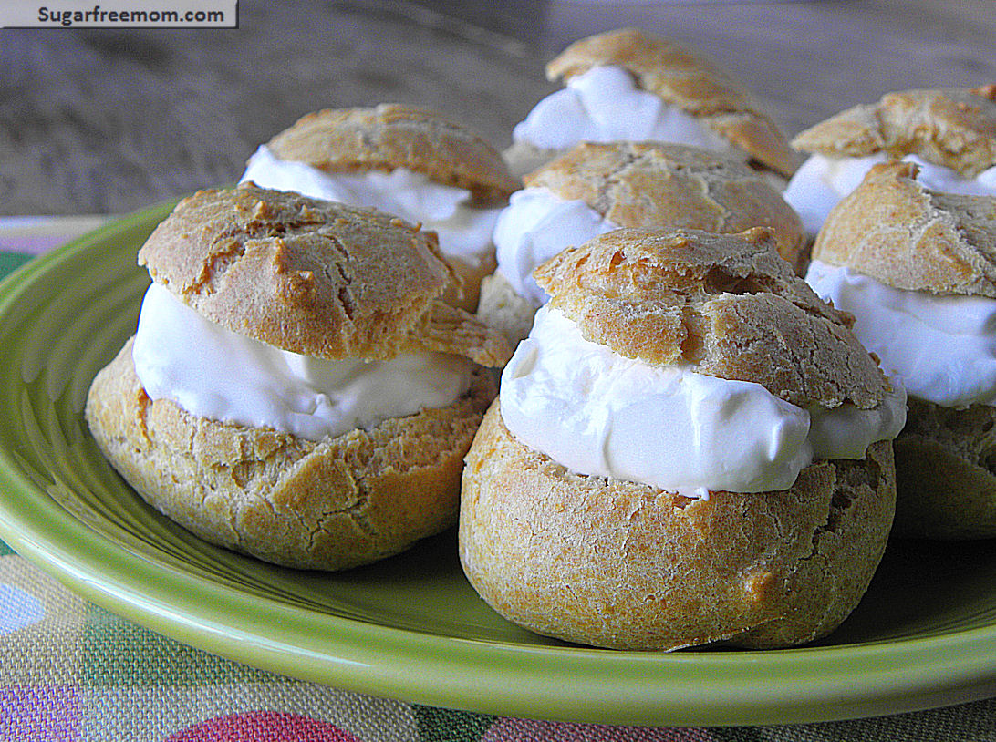 - With an electric mixer, beat cream and liquid stevia together until light and fluffy. Refrigerate until ready to fill puffs.Once puffs are cooled, slice off top and add cream filling.